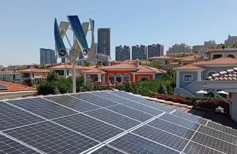 Hadımköy Yolu üzerindeki Nevtra Yapı Mimarlık firmasına kurulan 10 kW’lık dikey eksenli rüzgar türbini
